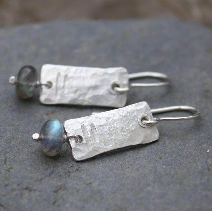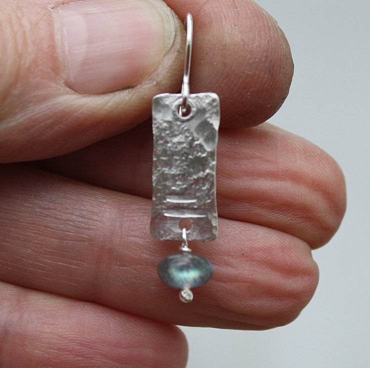 Simple lightweight forged silver earrings with flashy labradorite beads.