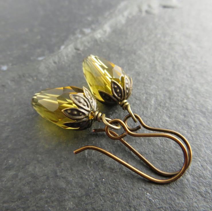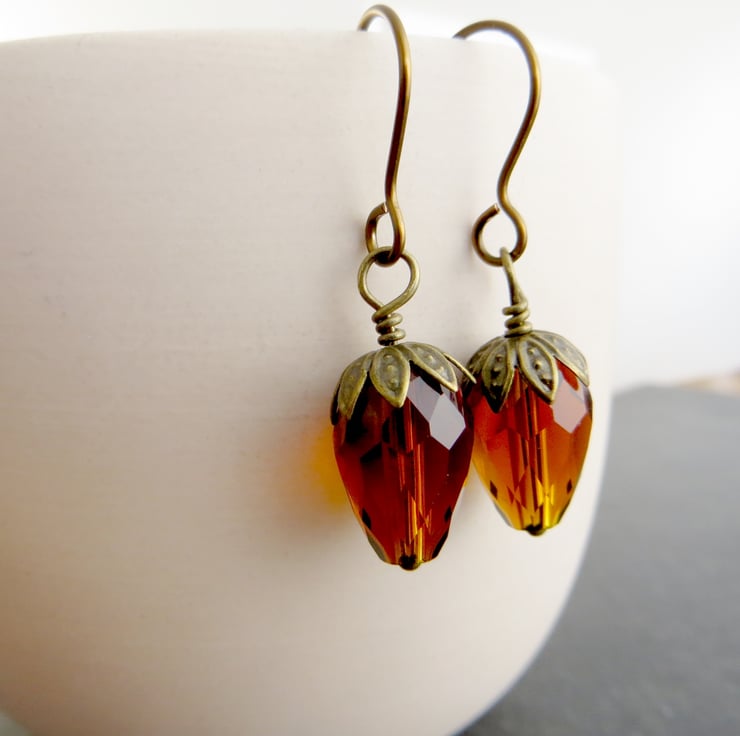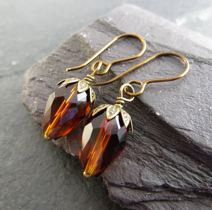 These handmade earrings feature rich brown faceted glass teardrop beads with antiqued brass caps, which look just like little acorns. The acorn earrings would make a great seasonal gift and are the perfect piece of autumn jewellery!