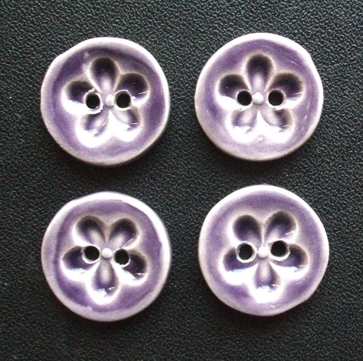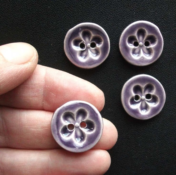 This cute little set of buttons are made from white earthenware clay and twice fired to a top temperature of 1100 degrees, so they are nice and strong.