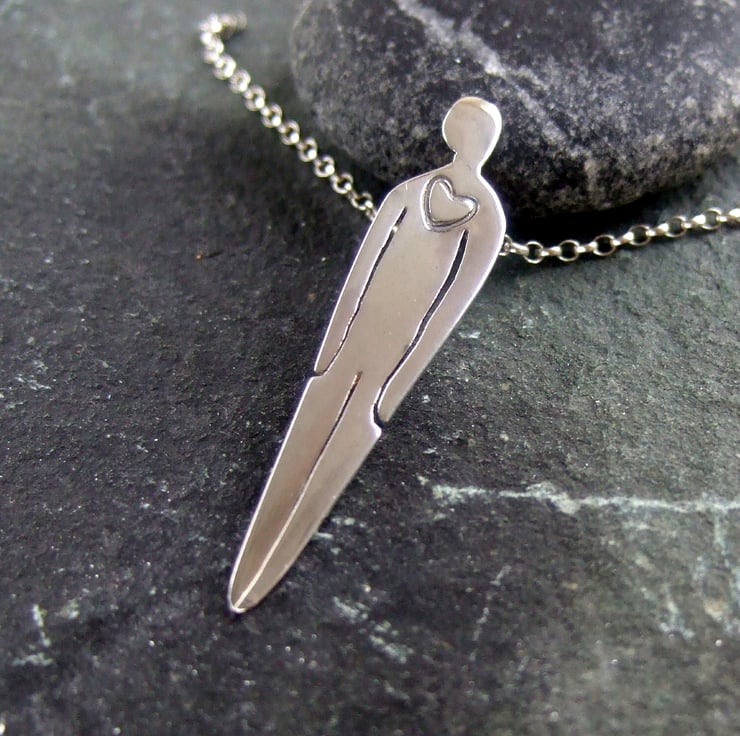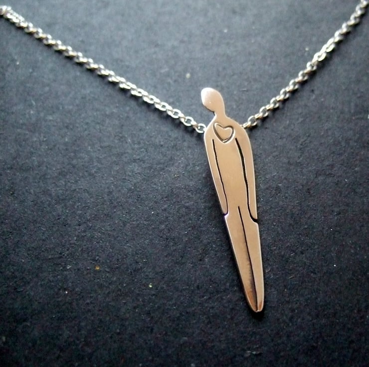 Oxidised Sterling Silver 42 mm X 10 mm hung on a 16" chain.