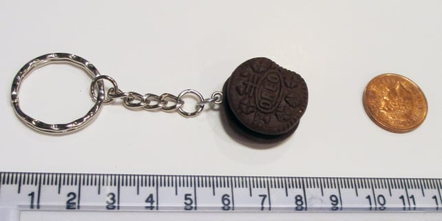 Retro Cookies and cream biscuit Keyring OR necklace, Quirky, fun, handmade