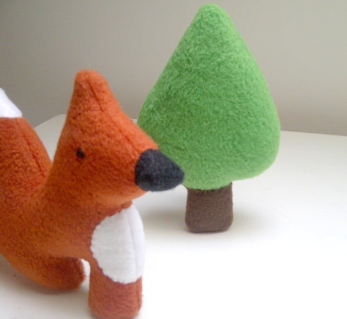 The tree measures 14cm high and 9cm wide, using green and brown fleece stuffed with polyester filling. Again, it may be hand washed.