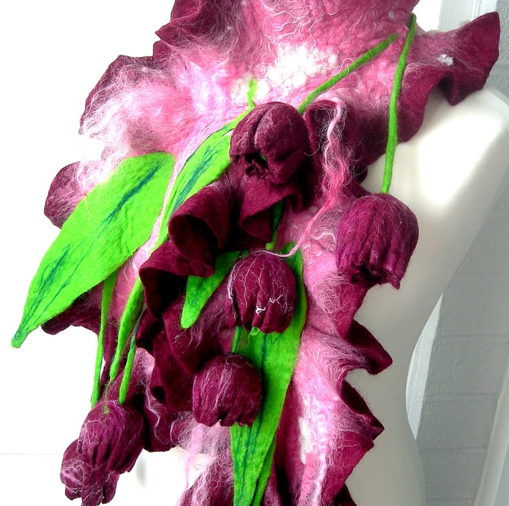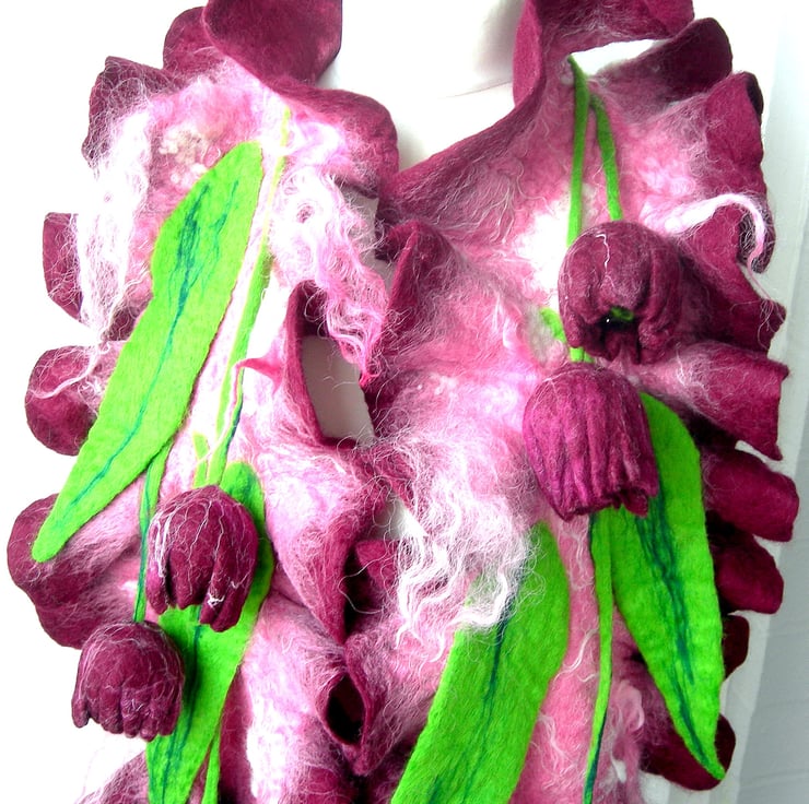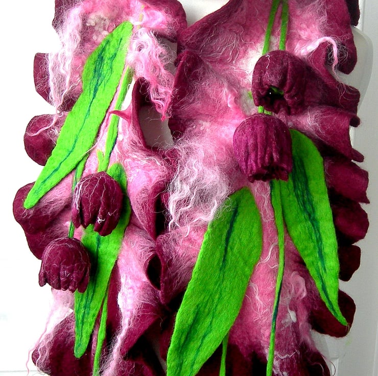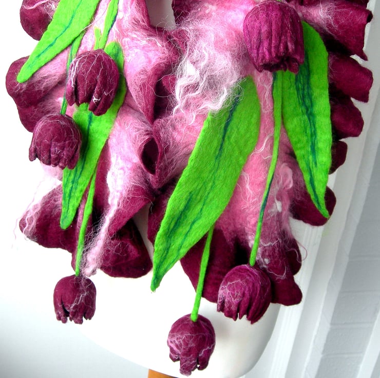 Hand Felted, Wool Jewelry felted SCARF -100% WOOL MERINO