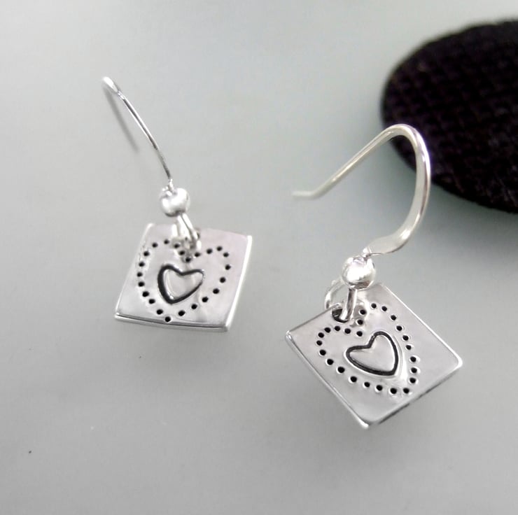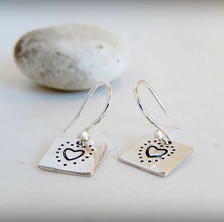Sterling silver heart drop earrings