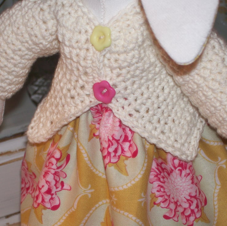 Her cardigan was made using Debbie Bliss Cotton - wool and herskirt and ears