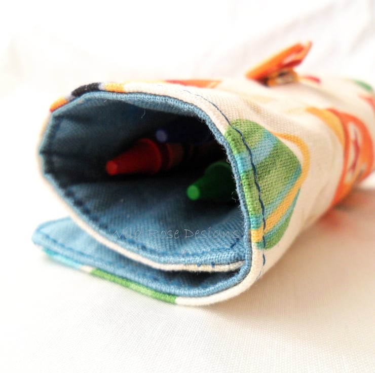 Mini pencil roll with crayons, a perfect letterbox gift!