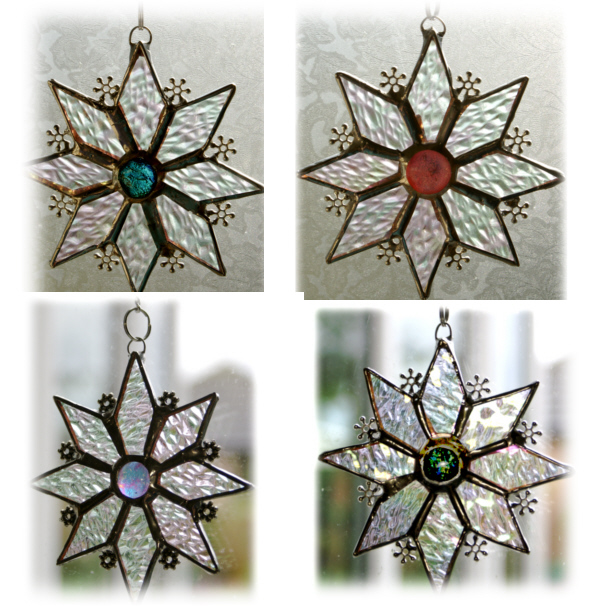 For extra sparkle I've soldered 8 little silvery snowflakes between each point.
