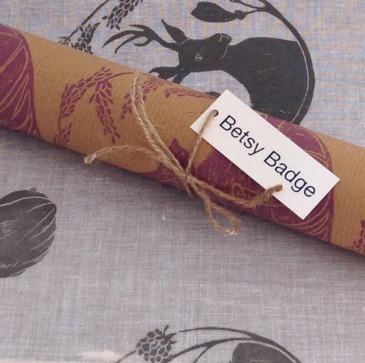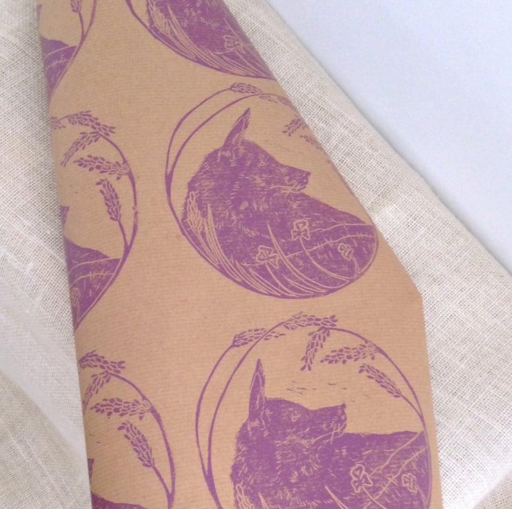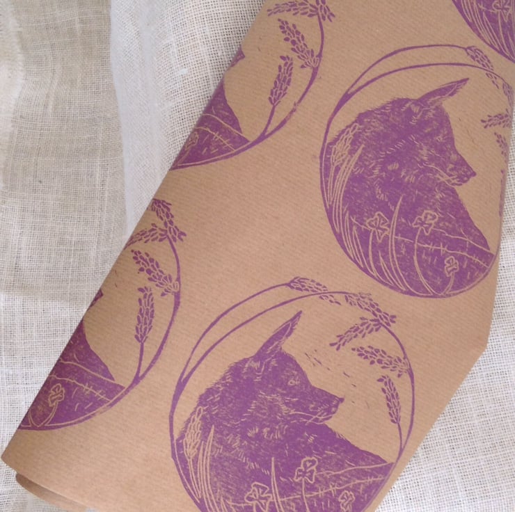 Beautiful rose purple fox design printed onto brown Kraft paper.