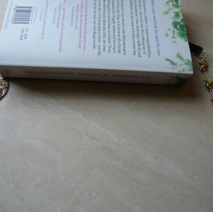 The complete length of the ribbon is approx 22.5 cm and as you can see fits nicely in most paperbacks. Total length including beads is approx 38 cm