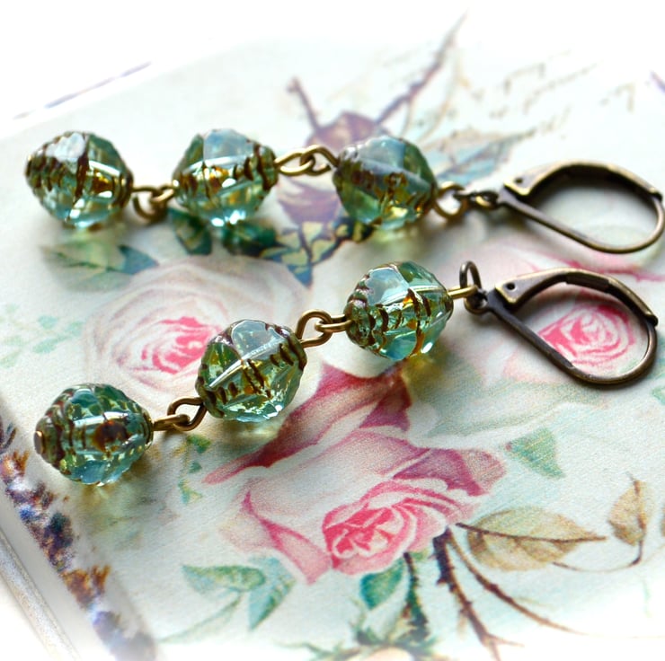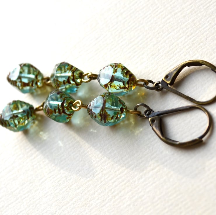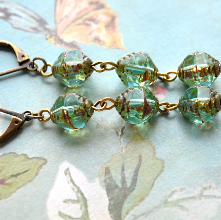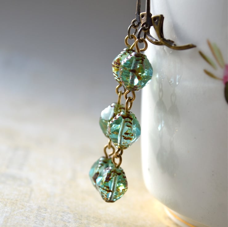 Pretty aqua dangle earrings in a vintage style, featuring lovely and unusual Czech glass beads.