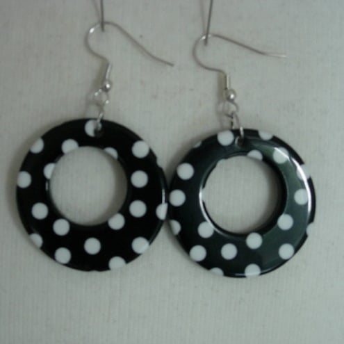I have made these fun little 60's inspired earrings. They are black and white stripes or polka dots with silver ear hooks.