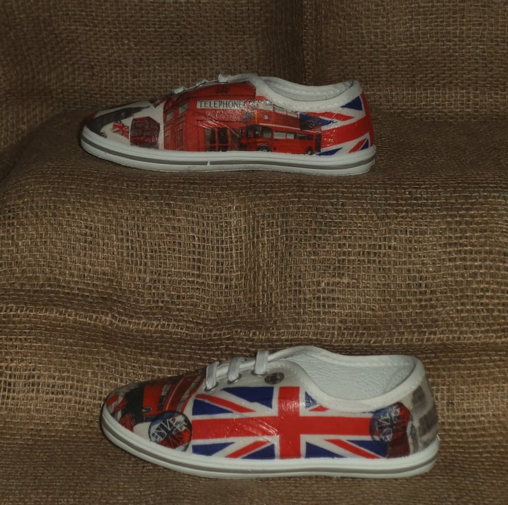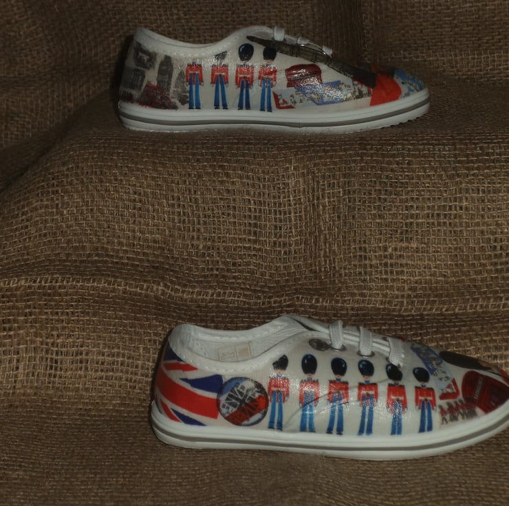 Decorated Canvas Shoes CHILDREN'S SIZE 9 London Great Britain Unique Decoupage