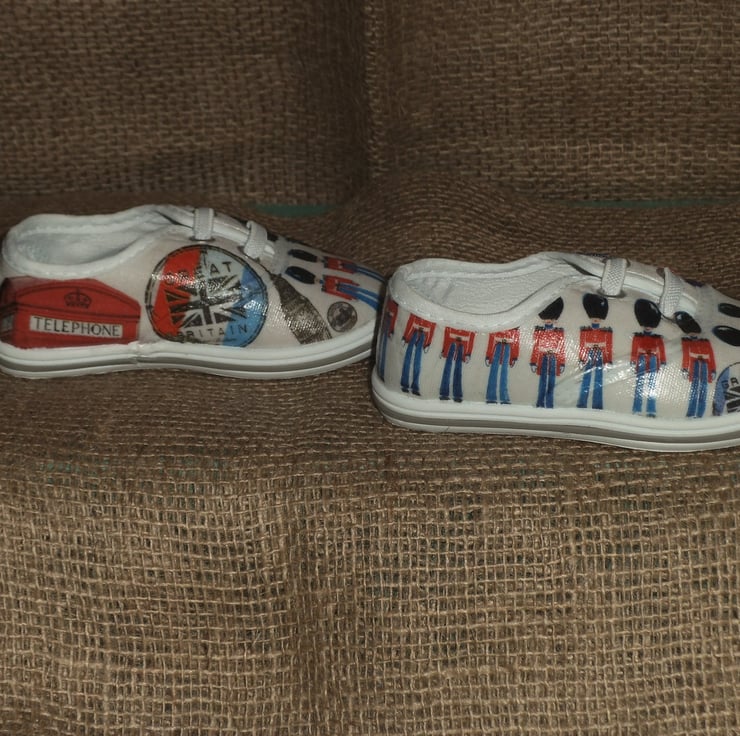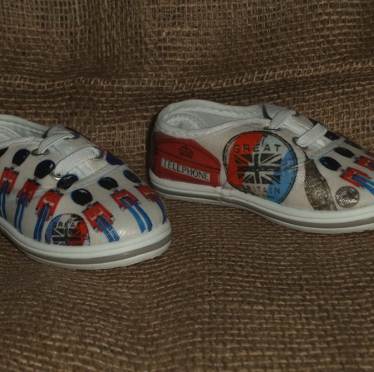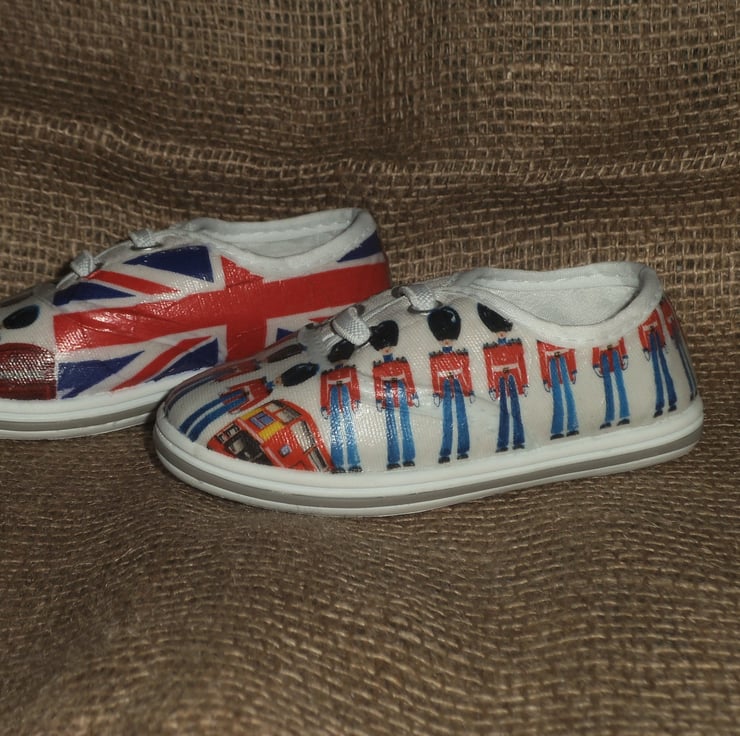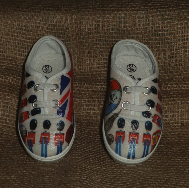 Decorated Canvas Shoes BABY SIZE C4 (20) London Great Britain Soldiers Unique