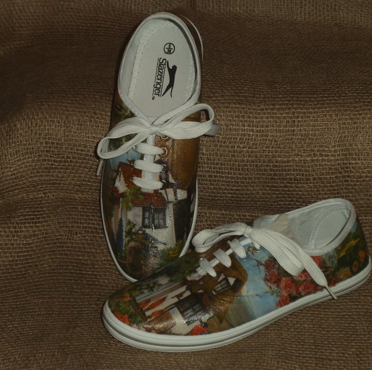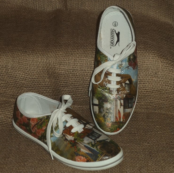 Decorated Canvas Shoes SIZE 5 (38) Country Cottage Individual Unique Decoupage