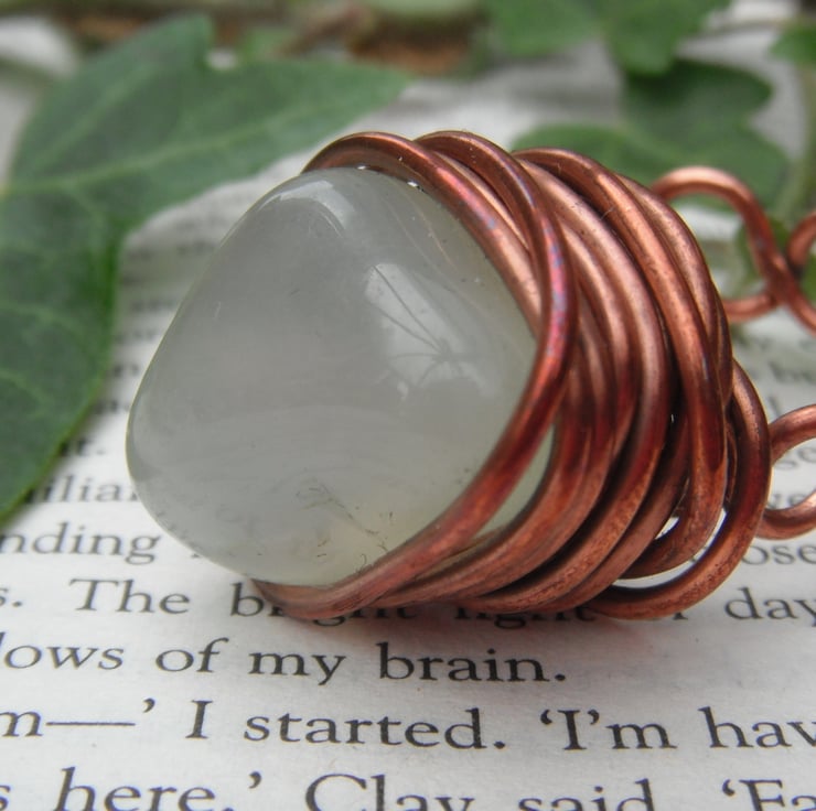 This is a free-form wire wrapped design, with a central focal of a pale green aventurine nugget that has been up-cycled and re-purposed from a broken piece of jewellery.