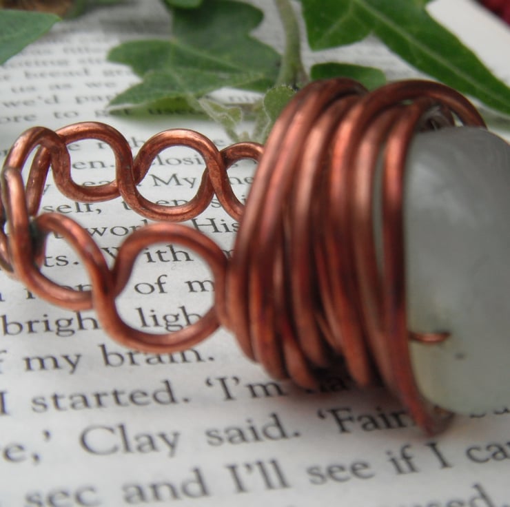 This wonderful ring is hand crafted from 1.2mm re-cycled copper wire, on a band wrapped in a style that gives it a Celtic feel. The wire has been allowed to take on an aged patina to give it a vintage feel, and character, but can be polished in the normal way to a high shine.