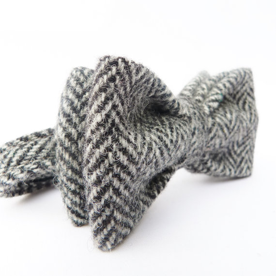 Bow ties are cool. A fabulous mens accessory handmade from a top quality genuine Harris Tweed fabric . Unlike most pretied bows this tie features a double bow and gives a true impression of a one piece bow tie. A simple velcro fastening makes it incredibly easy to fit and wear.