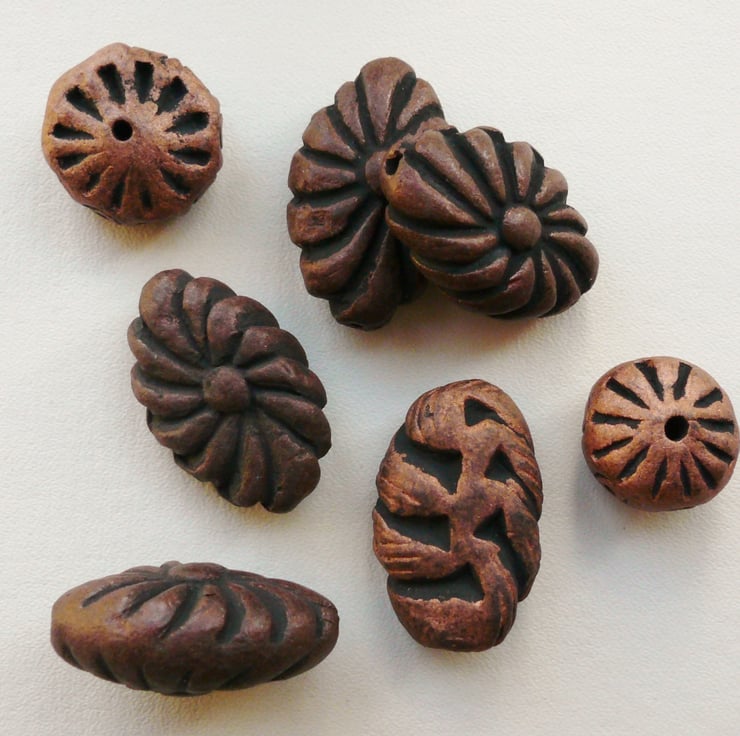 This listing is for 7 - 5 oval and 2 round cushion - antique finish chunky terracotta wooden beads.