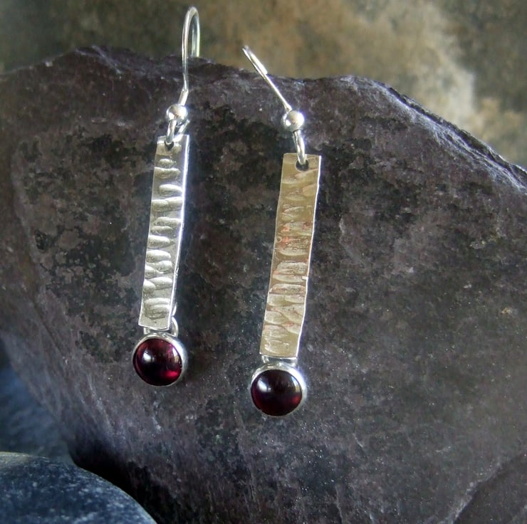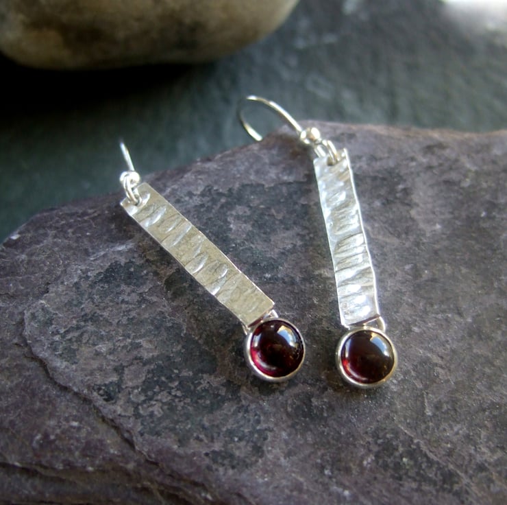 Garnet 6 mm cabochon and forged sterling silver bar 4 mm x 18 mm on a sterling silver hook