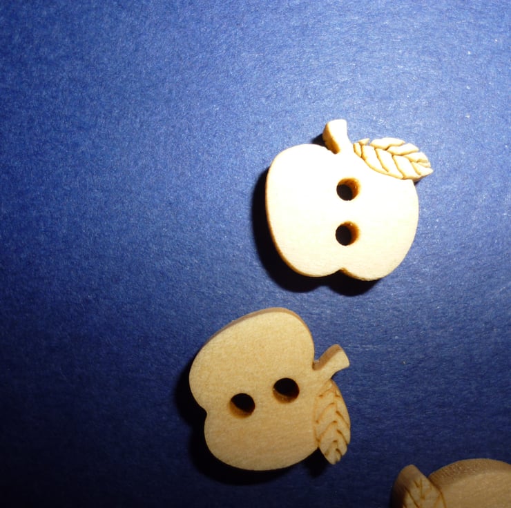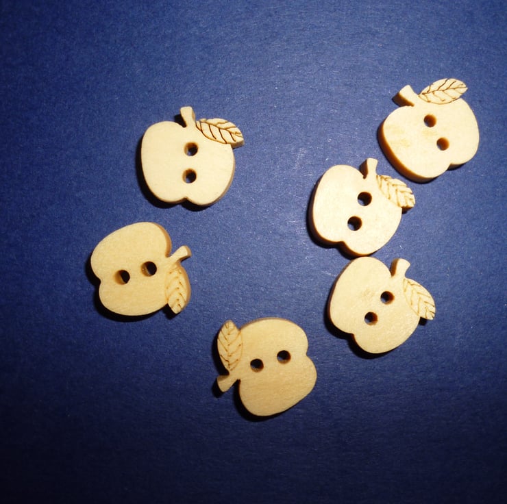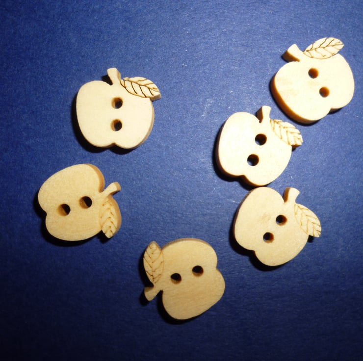 A set of 6 buttons. These buttons have no coatings or varnishes allowing you to decorate, or stain them to your own design to match a particular project.