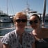 Ladies half apron pink and cream floral stripewith cream ric rac trim.Pocket to front