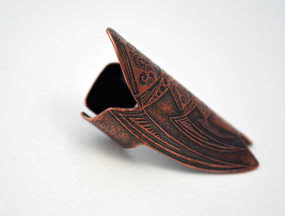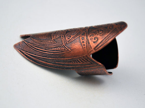 This large copper medieval style shield ring is adjustable and inspired by armour and steampunk styling. The design is completely original and developed from an original hand drawing by me in my home studio. This design is then transferred to sheet copper and etched to create a stunning relief. Finally the piece is oxidised and polished to create a antique finish. A real statement piece that will not go unnoticed on any hand it graces.