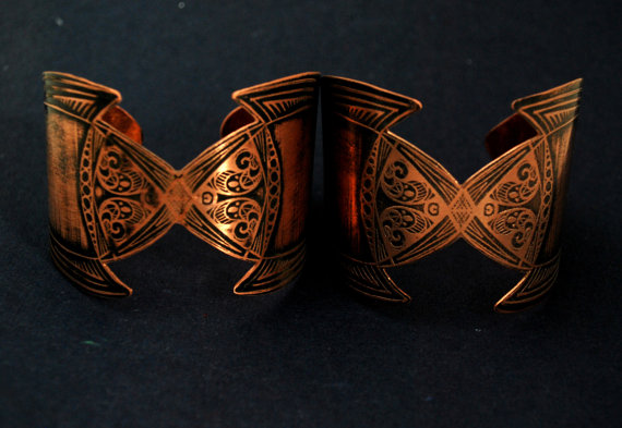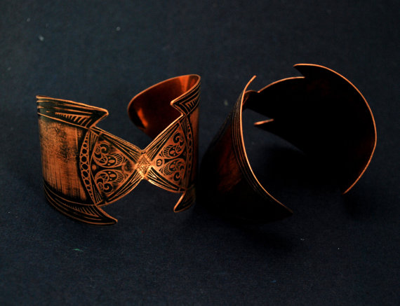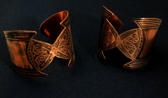 medieval etched cuff - copper elven cuff - armour cuff - futurisic