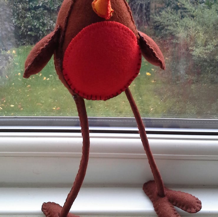 These 'feathered' friends are the next generation from the smaller red robin tree decoration. They like to roost on book shelves, mantelpieces or any comfortable shelf they can find to rest their long legs.