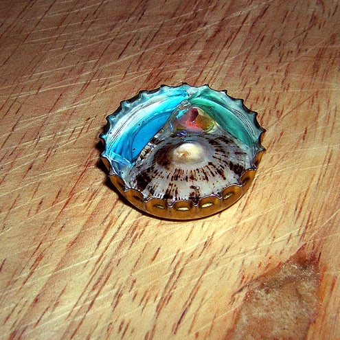 Alternatively, if you have a special item you would like to be set in resin (a lone favourite earring when the other has been lost, a broken ring etc) then it can have a new life as a bottle top rock pool broach or magnet! Please conversation me for this service