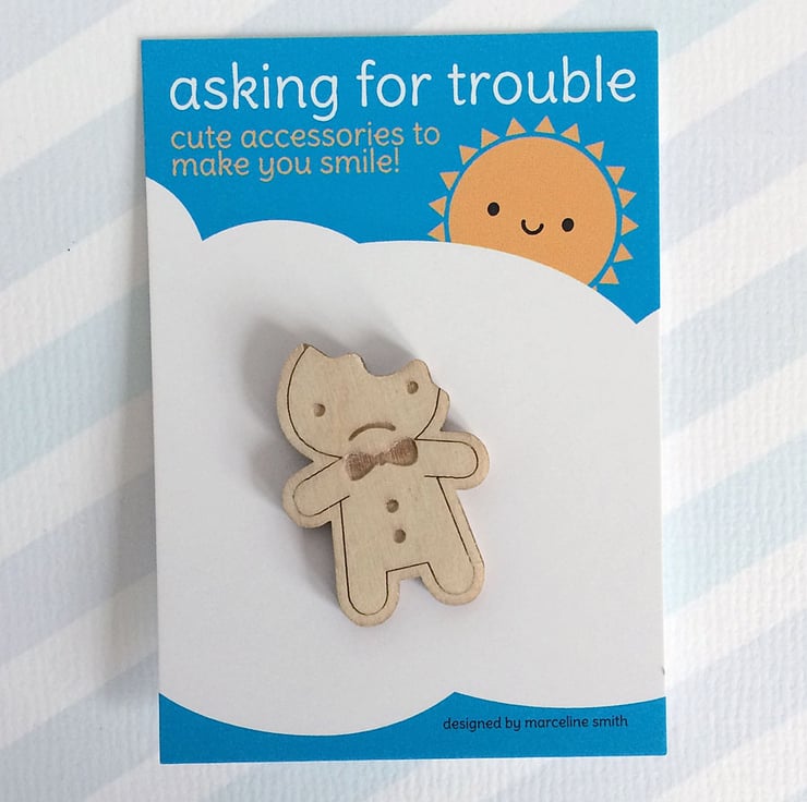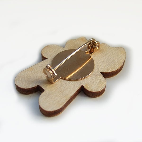 As these brooches are made from wood there may be some slight variation in the colouring and texture. Happy cookie brooches are also available in my shop.
