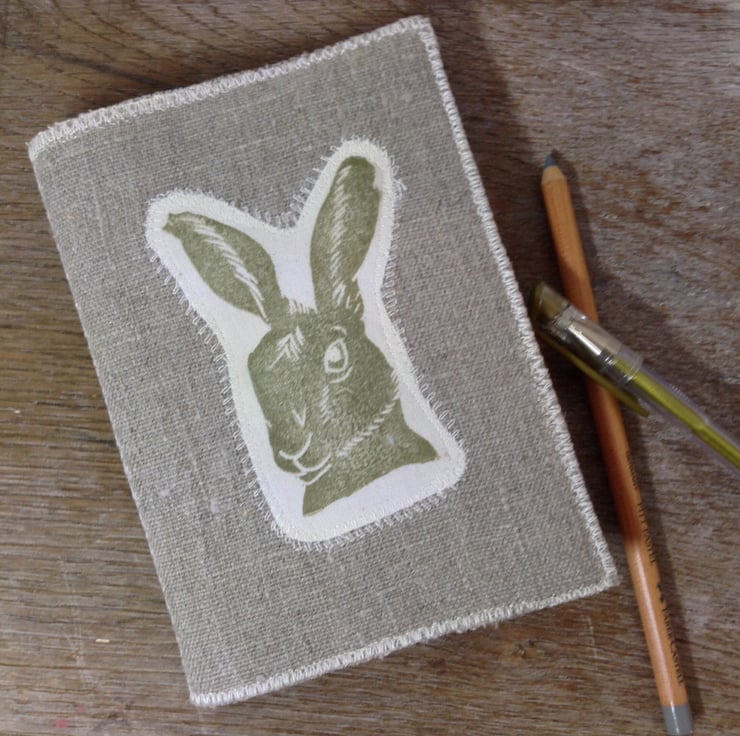 Hand printed Hare on a pure linen fabric. There are many special touches that would make this a wonderful gift.