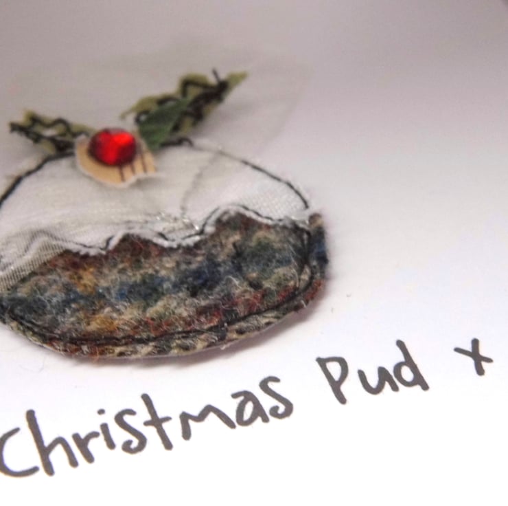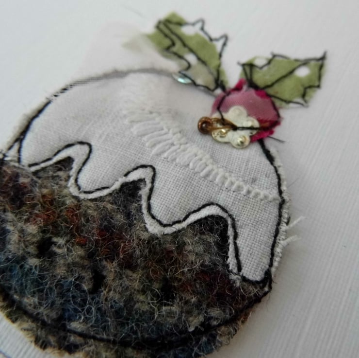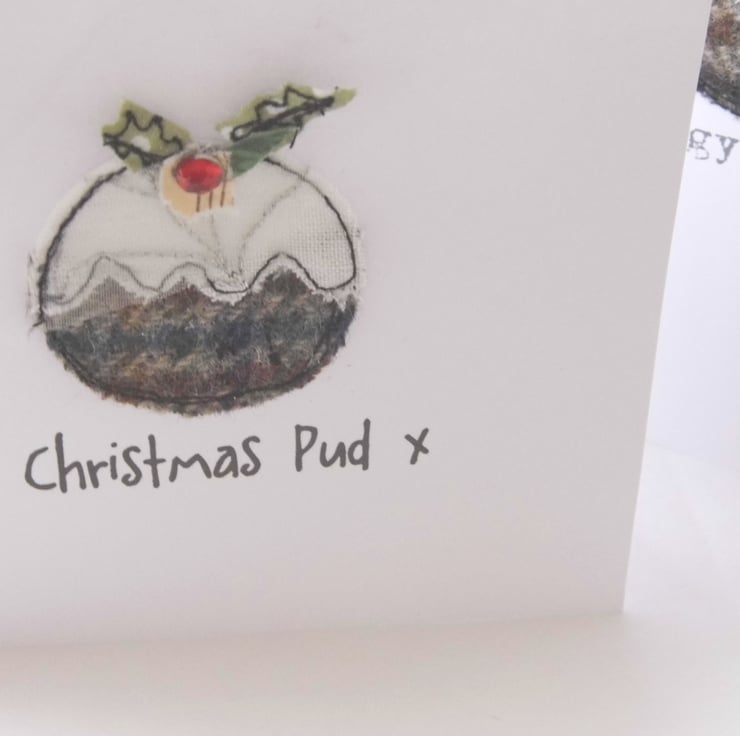 These cute Christmas puds made from fabric have been free machined onto card and are perfect for that special person