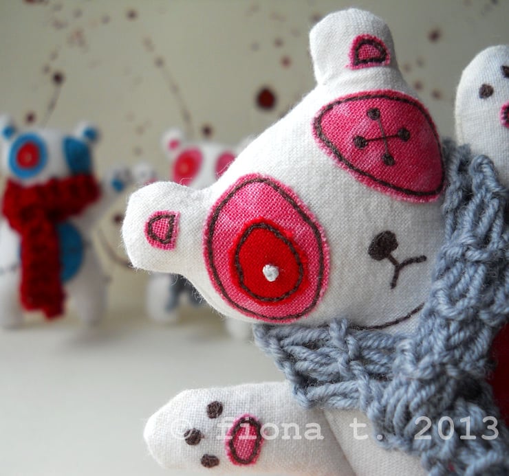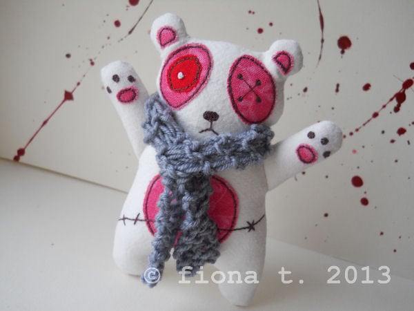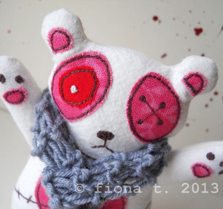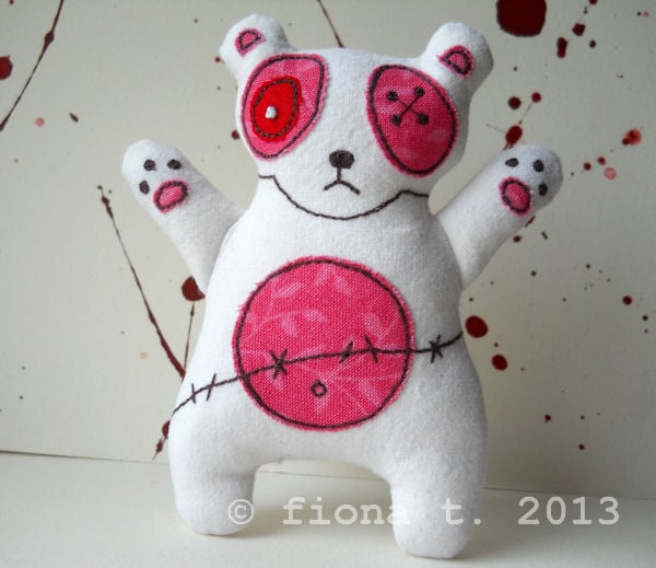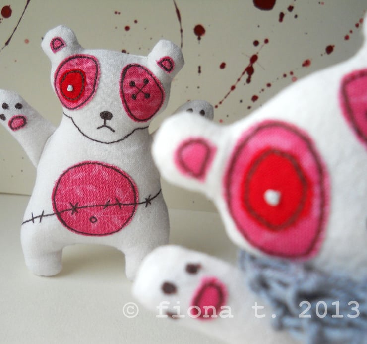 these zombie pandas are made entirely on a domestic sewing machine. everything is cut, stitched & drawn freehand by me, ensuring it is unique, well made and securely constructed.