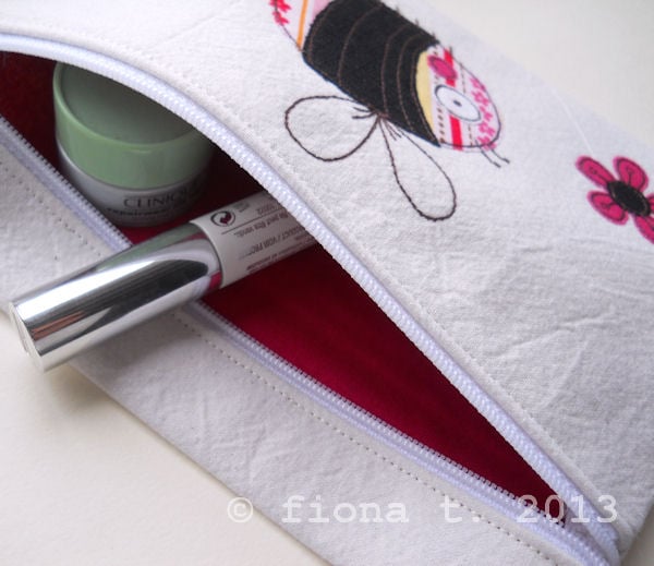 it is stiffened with vilene, lined with deep pink cotton and has a zip fastening.