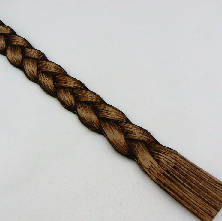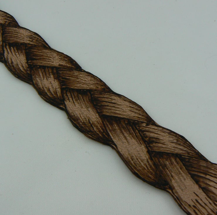 this bookmark measures 9" x 1" and I have pyrographed the plait design on the surface of the leather.