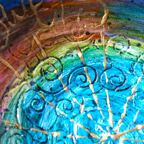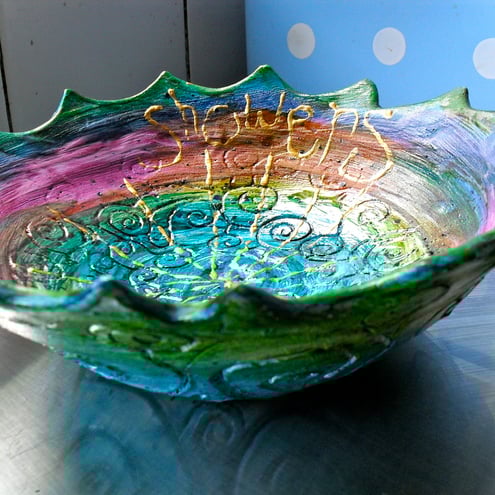 First there is rain then there is the sun...and then there comes a rainbow.. and they are all here in this handmade stoneware bowl!