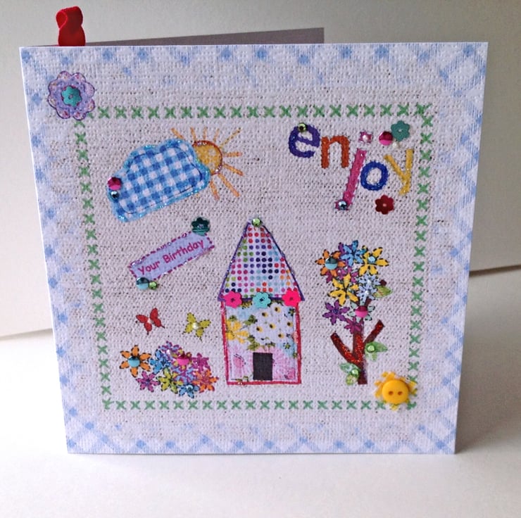 The message is 'Enjoy' which is in a felt print alphabet, then in normal text 'your birthday'