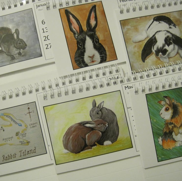 A desk calendar for 2014, featuring artwork from Dandelion's Gallery. There is a picture for each month of the year, plus the Dandelion's Gallery logo on the front cover.
