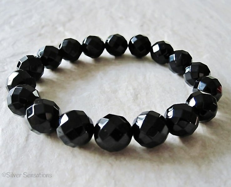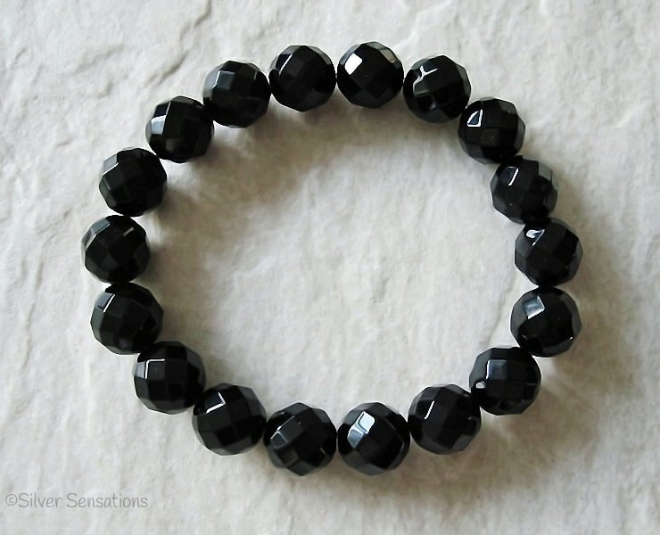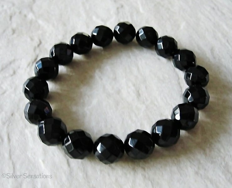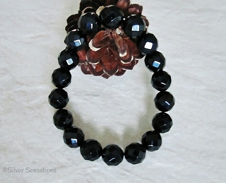 This hand crafted stretch bracelet has been created with beautiful faceted Black Onyx round beads which are 10mm in size.