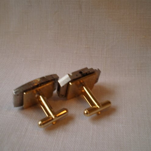 I have used a wonderful pair of matching Vintage watch movements to make these unique cuff links, for the man in your life ( Fathers Day perhaps) Still very elegant and stylish ...but makes you different from the rest.