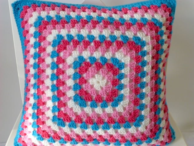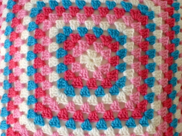 I love traditional granny squares. The combination of turquoise and pink is one of my favourites.