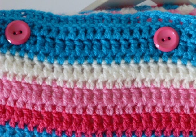 One on side is a large granny square, while the other is striped. Use it either way for a different look.