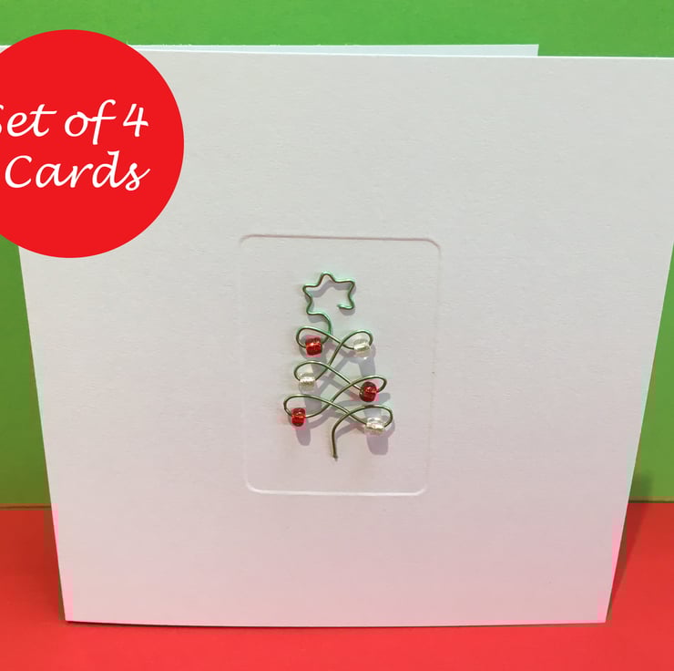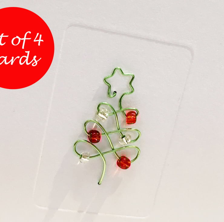 Pack of 4 Wire Christmas Tree Cards.