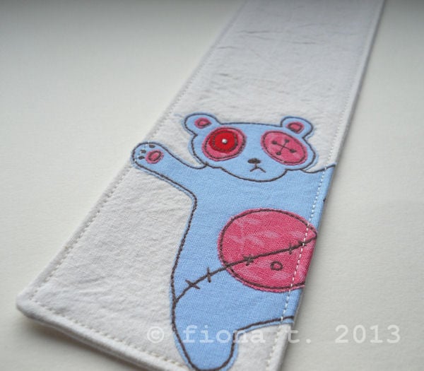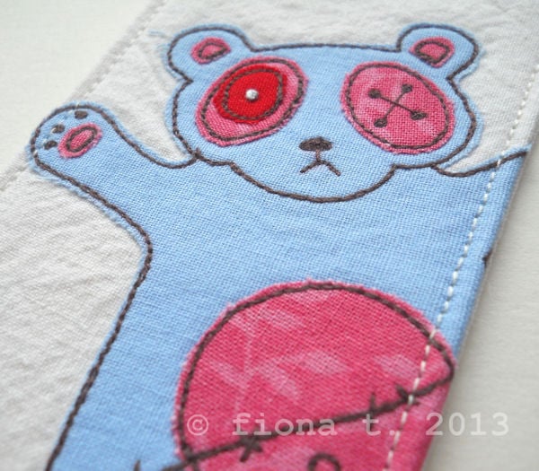 embroidered zombie panda bookmark.