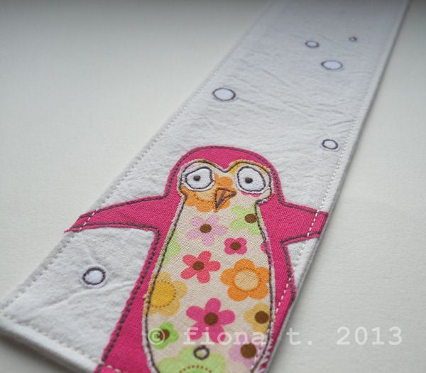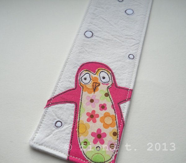 this little penguin is in pink cotton, with a pretty riley blake print tummy.