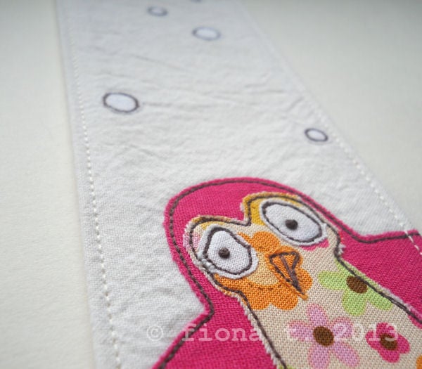 these bookmarks are made up with heavy weight calico, stiffened with vilene, and backed with medium weight calico – i prewash all of my fabrics so they should not shrink when washed.