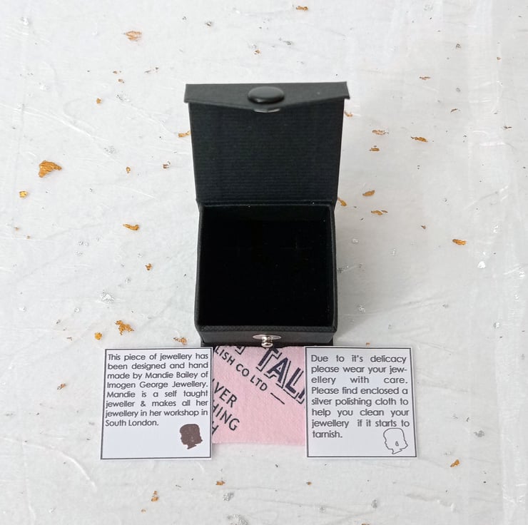 The earrings will arrive in a black jewellery box, complete with simple care instructions and a small square of silver polish.