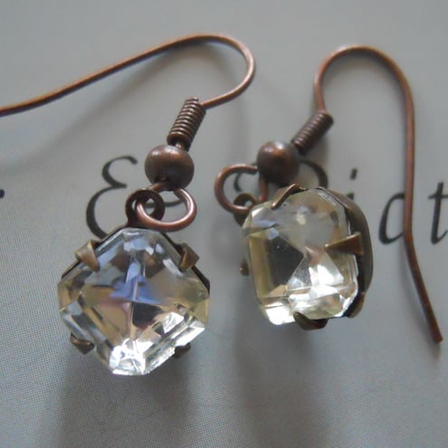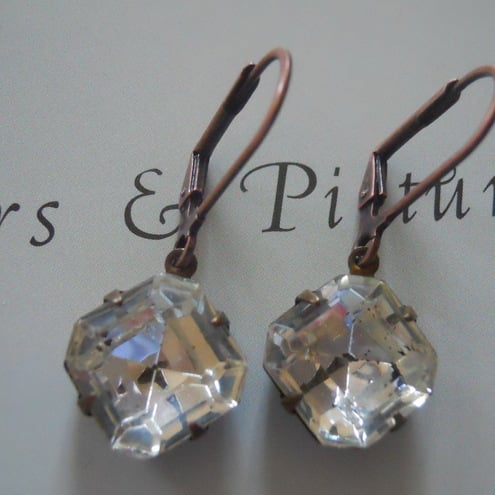 These dainty vintage crystal clear square octagon glass earrings are in brass settings on vintage brass French ear wires. Very cute! Wear for a special occasion like a wedding or casual with jeans either way you will get plenty of compliments!