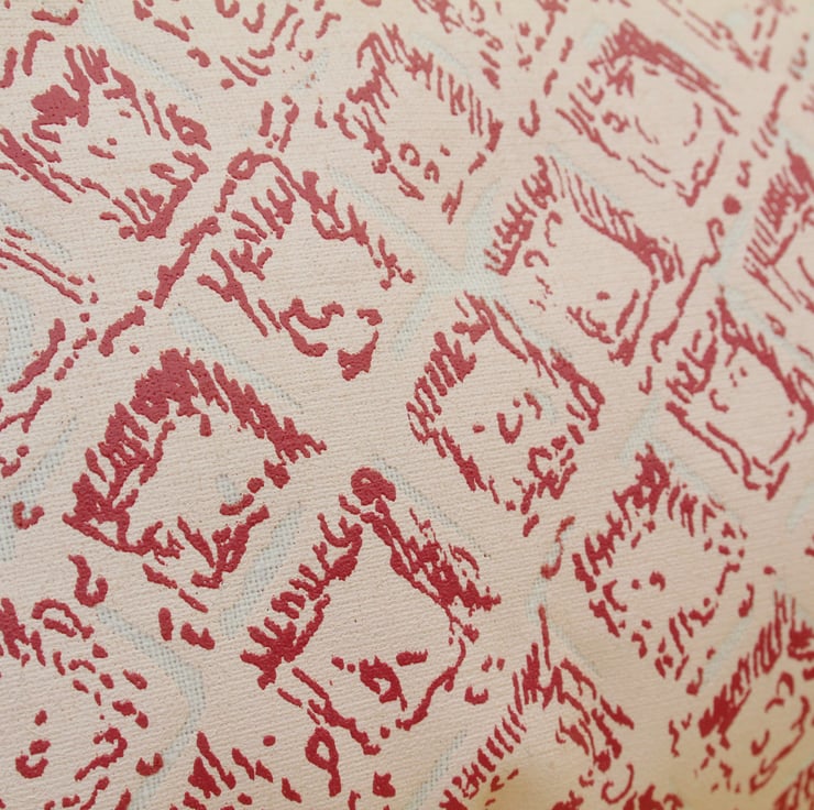 A pink wafer biscuit cushion to brighten up any living room. The colourful design is based on a detailed illustration of the pink wafer biscuit by illustrator Simon Lewis. The two colour biscuit design is then screenprinted onto cotton fabric and made into a cushion.