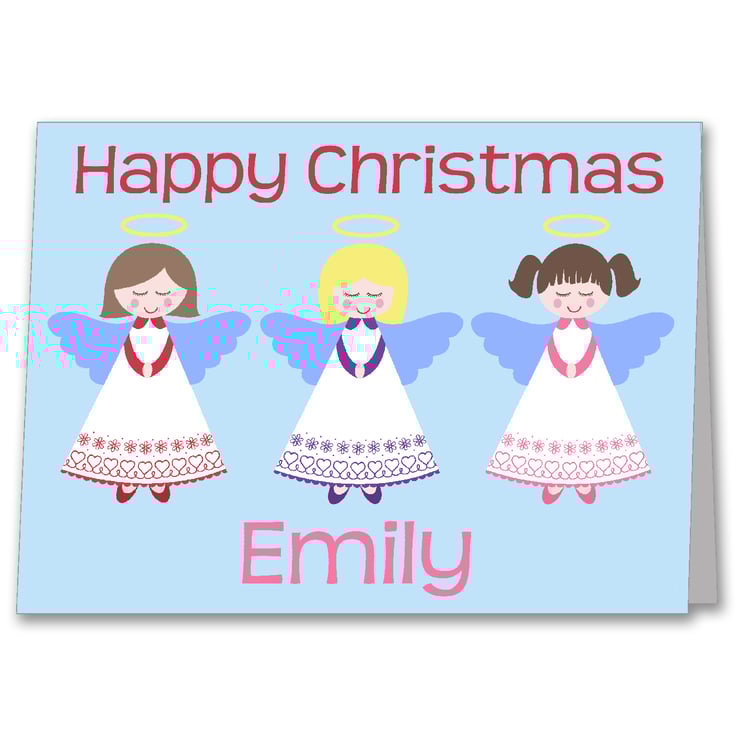 This personalised angel Christmas card is designed and printed especially for you. You may want to send it to a special child or you may have children that would like to send it to a cherished Nana, Grandad, friend or relatives.